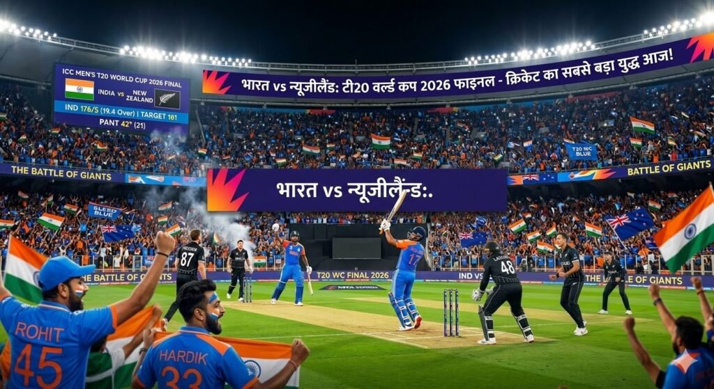 नमस्कार क्रिकेट प्रेमियों! आज का दिन क्रिकेट इतिहास में स्वर्ण अक्षरों से लिखा जाएगा। भारत vs न्यूज़ीलैंड का यह टी20 वर्ल्ड कप 2026 का फाइनल मैच न सिर्फ दो दिग्गज टीमों के बीच जंग है, बल्कि लाखों फैंस के सपनों का फैसला भी। अहमदाबाद के नरेंद्र मोदी स्टेडियम में शाम 7:30 बजे से शुरू होने वाला यह मुकाबला ‘महायुद्ध’ से कम नहीं। भारत ने सेमीफाइनल में इंग्लैंड को हराकर फाइनल में जगह बनाई, तो न्यूज़ीलैंड ने अपनी कसी हुई गेंदबाजी से दक्षिण अफ्रीका को धूल चटा दी। कौन बनेगा चैंपियन? आइए, इस रोमांचक मैच की पूरी तैयारी करते हैं।